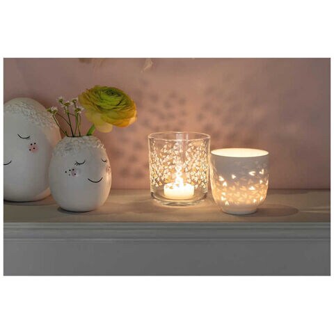 グラスを通して映るキャンドルの灯りが特徴的なガラス製キャンドルホルダー。