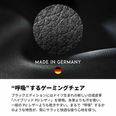ブラックエディションにはドイツ生まれの新しい合成皮革「ハイブリッドPUレザー」を使用。