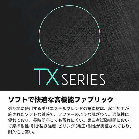 張り地に使用するポリエステルブレンドの布素材は、起毛加工が施されたソフトな質感で、ソファーのような肌ざわり。