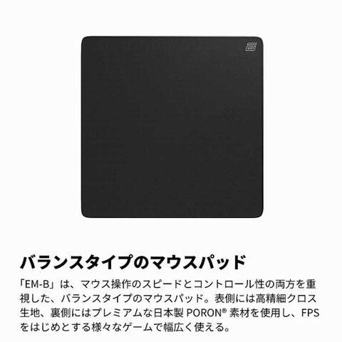 「EM-B」は、マウス操作のスピードとコントロール性の両方を重視した、バランスタイプのマウスパッド。
