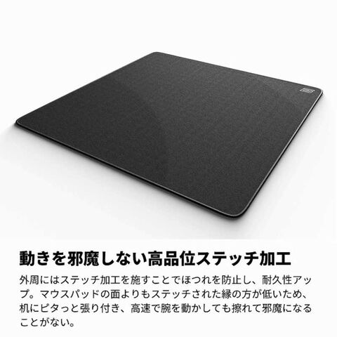 マウスパッドの面よりもステッチされた縁の方が低いため、机にピタっと張り付き、高速で腕を動かしても擦れて邪魔になることがない。