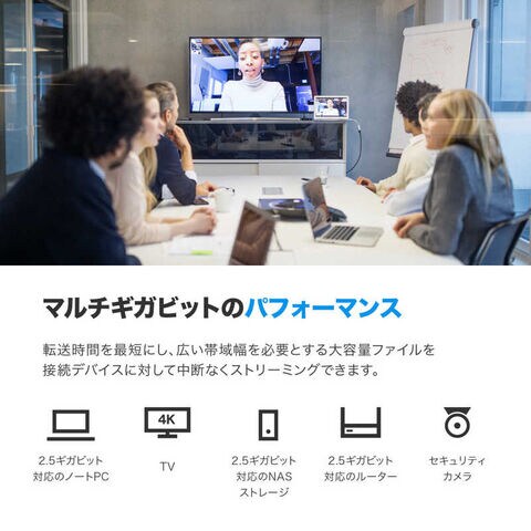 仕様1:[ポート数]5x 2.5G マルチギガビットポート[電源端子]USB Type-Cポート[PoE対応]非対応[対応規格]IEEE 802.3、802.3u、802.3x、802.3ab、802.3az、802.3bz、802.1p[最大通信速度(全二重)]2.5Gbps[スイッチング容量]25Gbps[MACアドレス登録数]4000[ジャンボフレーム]12Kバイト[FCCクラス]Class B