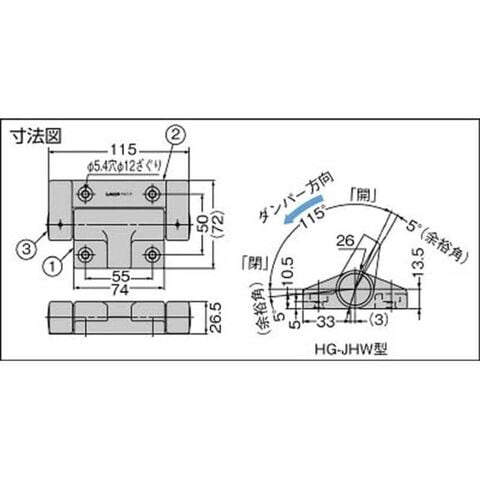 ●ダンパーの方向は閉じ方向になります。