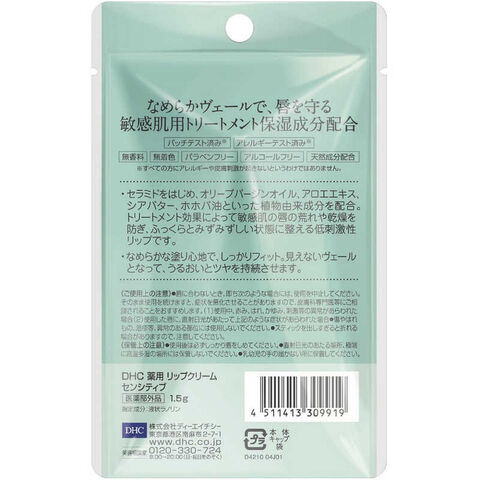 大人気の「DHC薬用リップクリーム」をベースに、敏感肌用に処方を設計した低刺激性薬用リップクリームです。