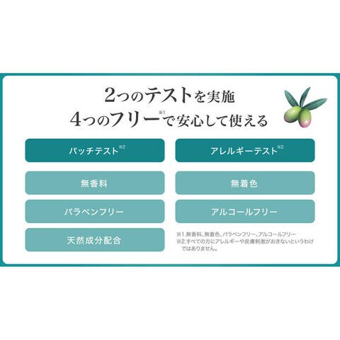 仕様1:無香料・無着色・パラベンフリー・アルコールフリー・天然成分配合