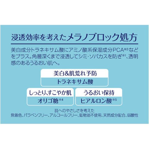 ●うるおいを抱え込み逃がさない植物由来の保湿成分をプラス。とろけるように肌になじむ、みずみずしい使用感で、なめらかな手ざわりの白肌を叶えます。