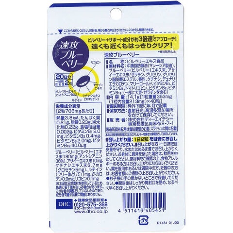 DHC DHC(ディーエイチシー) 速攻ブルーベリー 20日分(40粒) 栄養補助食品