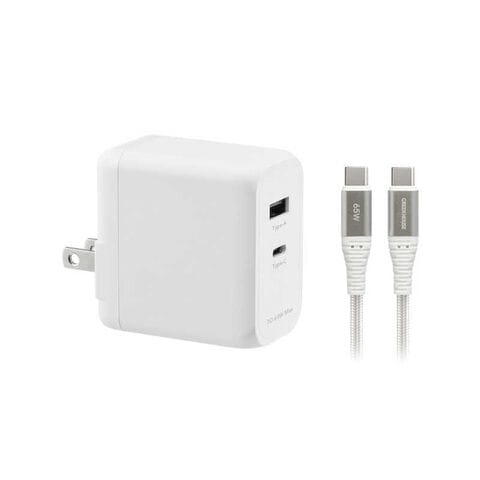 グリーンハウス USBAC充電器 2ポート 65W USB TypeCケーブル付きホワイト [USB Power Delivery対応 /2ポート /GaN(窒化ガリウム) 採用] GH-ACU2GC-WH