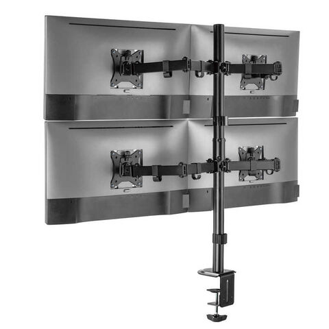 グリーンハウス 液晶モニターアーム 4画面(2×2) クランプ グロメット式 GH-AMEN4-BK