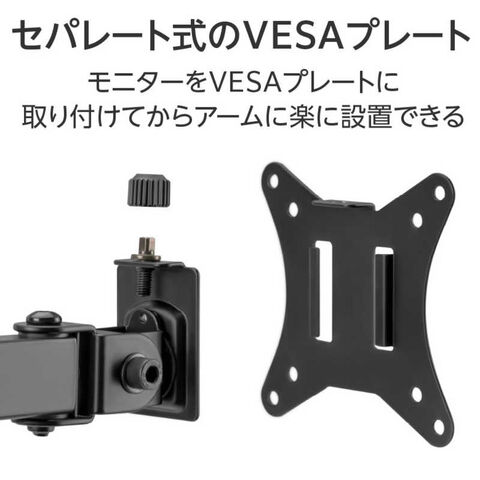 仕様1:[対応モニターサイズ]各17~32インチまで[対応規格]VESAマウントインターフェース規格(FPMPMI)100mm/75mm[耐荷重]各~9kg(合計36kg)[可動範囲] チルト:上45°/下45° パン:左90°/右90° 回転:左180°/右180°[寸法]W869×D112×H957mm[重量]約5.9kg[付属品]モニター取り付け用ネジ、六角棒レンチ、取扱説明書/保証書