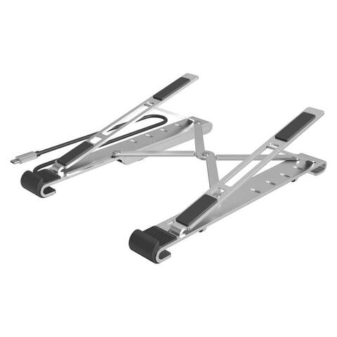 ●ノートパソコンを載せて角度調整もできる折りたたみ式アルミスタンド一体型ノートパソコンを載せて5段階に角度調整ができるスタンド一体型。