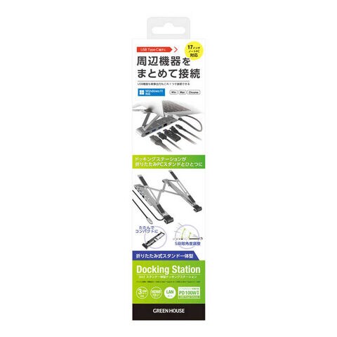 グリーンハウス 6in1 スタンド一体型ドッキングステーション [USB Power Delivery対応] GH-MHC6B-SV