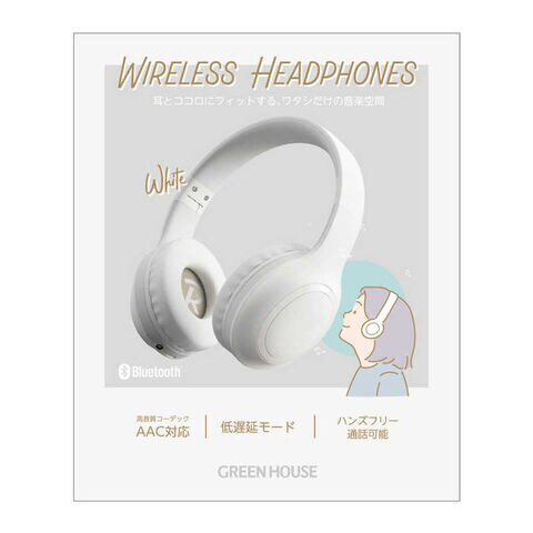 グリーンハウス ワイヤレスヘッドホン ホワイト [Bluetooth対応] GH-HPBB-WH