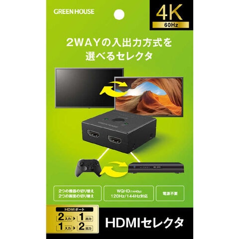 グリーンハウス HDMIセレクタ 2ポート 双方向対応 [2入力 / 1出力 / 4K対応 / 手動] GH-HSWM2C-BK