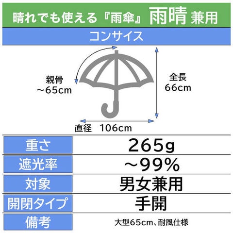 大型65cmの親骨なので濡れにくく、風にも強い構造です。生地は軽量生地を使用。日傘としてもお使いいただけます。