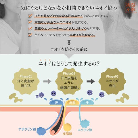 体臭、汗臭を防ぐ。