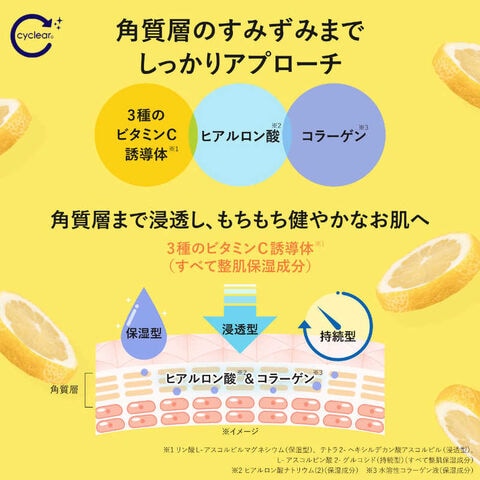●3種のビタミンC誘導体*1(保湿型*A・浸透型*B・持続型*C)配合。