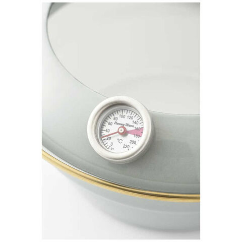 ●二度揚げ料理にも便利な温度計付き天ぷら鍋。ホーローは熱伝導のいい鉄製で油の温度上昇が早く、表面はガラス質で匂いや汚れがつきにくいため揚げ鍋に適しています。