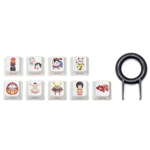 キートップに日本の伝統的な民芸品や日本を象徴するものを印刷しました。