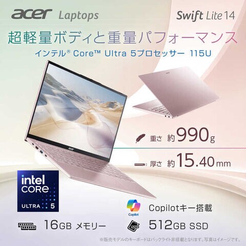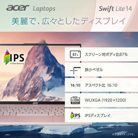 Acer Swift Lite 14は、約990gの軽さと15.4mmの薄さを実現しながら、携帯性に優れた14インチディスプレイを備える、ウルトラライトノートです。