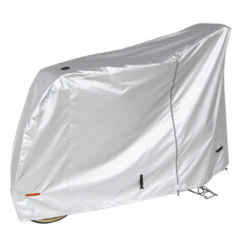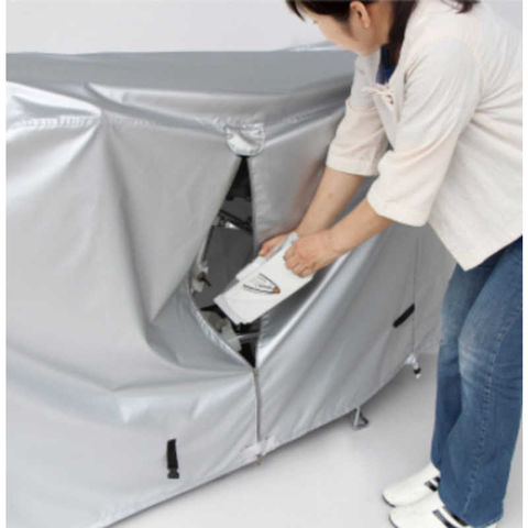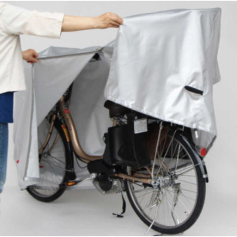 中央の大きなファスナーを全開にすればカバーが大きく広がるため自転車の横からサッとかけられます。