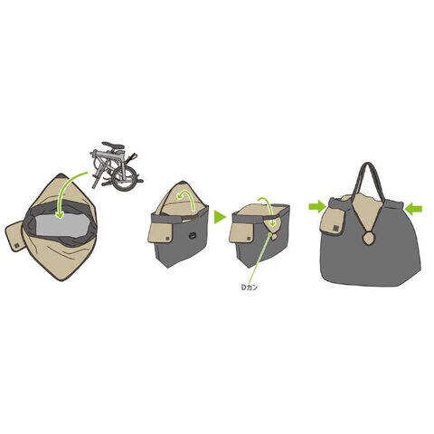 持ち上げるだけで口が自然に絞られ、自転車にぴったりフィットします。