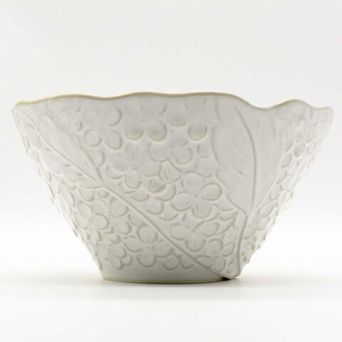 丁寧に彫られたレリーフの花模様としっとり落ち着いた色の器がテーブルシーンを優雅に演出してくれます。