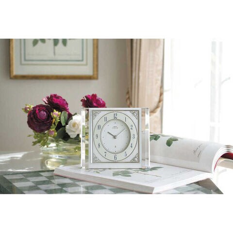 ●白大理石とシャープな輝きを放つカットガラスが作り出すモダンな佇まいの置時計