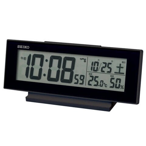 セイコー 目覚まし時計 (夜でも見える) 黒 [デジタル /電波自動受信機能有] SQ324K