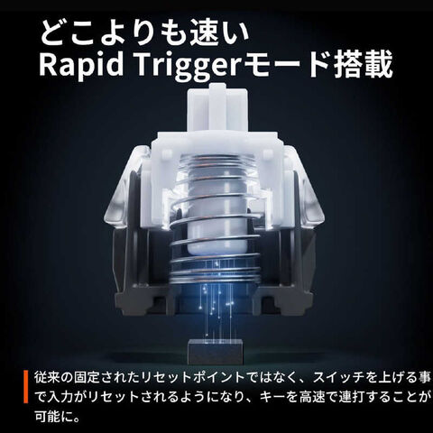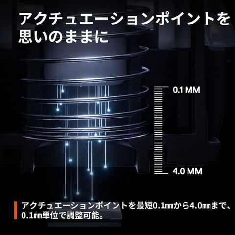 キーストロークの作動距離を約0.1mm単位で調整可能。羽のように軽い0.2mmのタッチも確実な3.8mmも、自由に選択できます。確かな精度と比類なきカスタマイズが思いのままに。