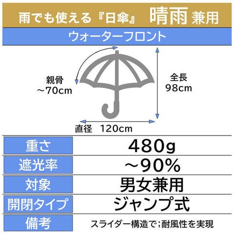 一振りでしずくをはらう高い撥水性能と、晴れの日でも使える紫外線カット加工付となっております。