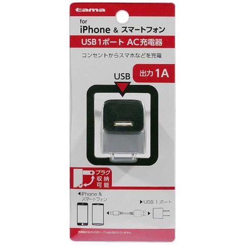 多摩電子工業 スマホ用USB充電コンセントアダプタ 1A ブラック TSA51UK