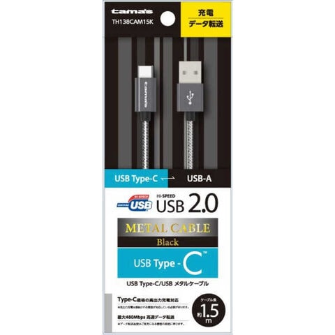 多摩電子工業 USB2.0 Type-C/USBメタルケーブル BK TH138CAM15K