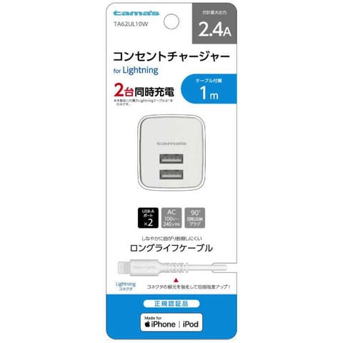 多摩電子工業 コンセントチャージャー2.4A Lightning 1m ホワイト TA62UL10W