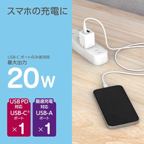多摩電子工業 PD20W コンセントチャージャーC+A C to Cケーブル ホワイト TAP156UCCC10W