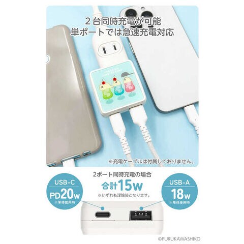 仕様1:ポート : USB-C(Power Delivery)×1、USB-A×1入力 : AC100V~240V 50/60Hz 0.5A max出力 : [USB-A] 単体使用時最大18W DC5V 3A、9V 2A、12V 1.5A[USB-C] 単体使用時最大20W DC5V 3A、9V 2.22A、12V 1.67A[2ポート同時使用時] 合計最大DC5V 3A材質 : (本体ケース)PC、(ACプラグ)銅合金+ニッケルめっき