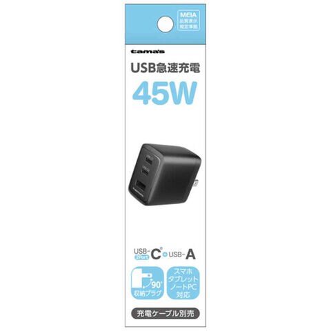 多摩電子工業 PD45W コンセントチャージャー C×2+A ブラック TSAP164UC2K