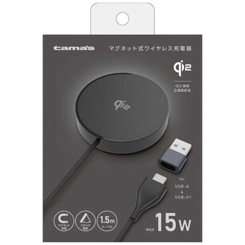 多摩電子工業 Qi2対応ワイヤレス充電器 2in1 ブラック TWC64K