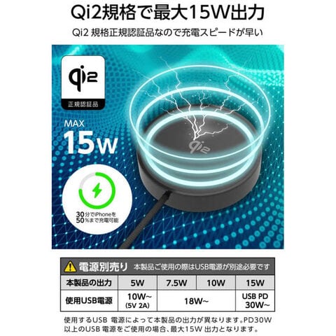 最大15Wの出力にはUSB PD 30W以上のUSB電源が必要となります。