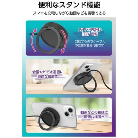 折りたたみスタンドを搭載し、充電しながらの動画視聴やビデオ通話に便利