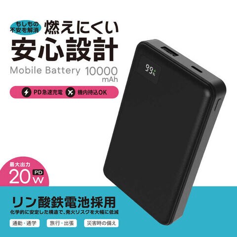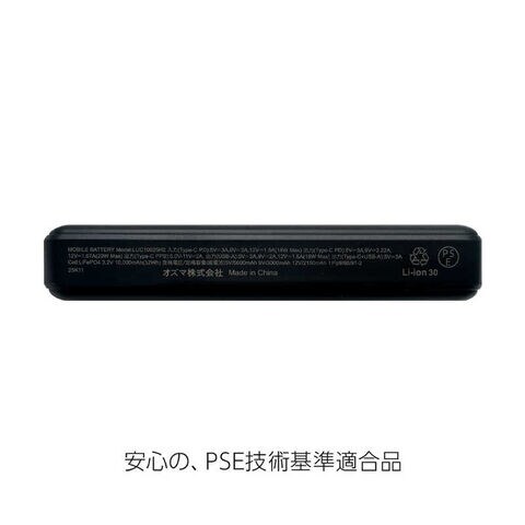 オズマ デジタル残量表示機能付リン酸鉄リチウムモバイルバッテリー 10000mAh 20W [USB Power Delivery対応 / 2ポート] ブラック LFPUC100D-CCBK