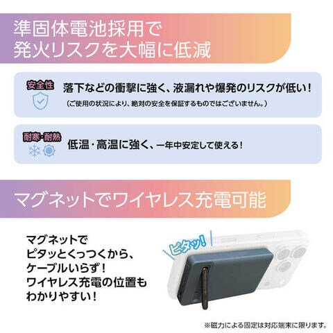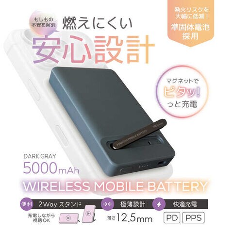 【2026年02月20日発売予定】オズマ ワイヤレス準固体モバイルバッテリー 5000mAh PD20W スタンド付 [USB Power Delivery対応 / 2ポート] ダークグレー SSLC2W50-CCDG