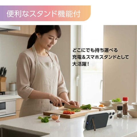 ●マグネットでワイヤレス充電可能マグネット式ワイヤレス充電を採用しているので、ケーブルや位置合わせも不要です。