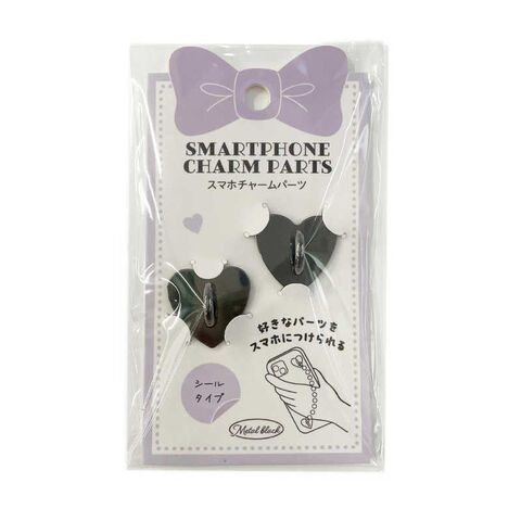 オズマ スマホ用ハート型背面チャームパーツベース シールタイプ2個入り メタルブラック SH-01GM