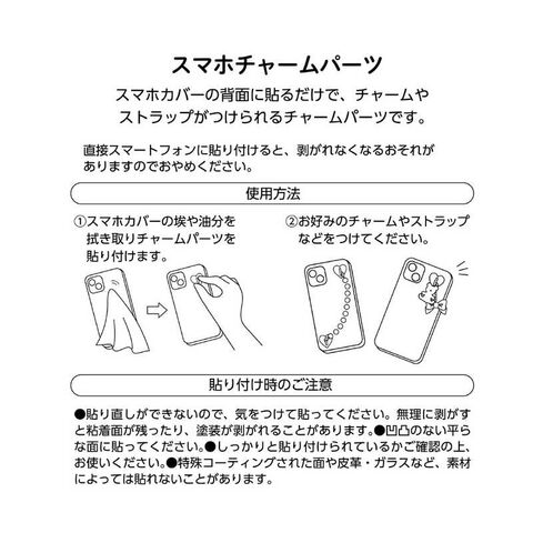 ●スマホカバーの背面に貼るだけで、チャームやストラップがつけられるチャームパーツです。