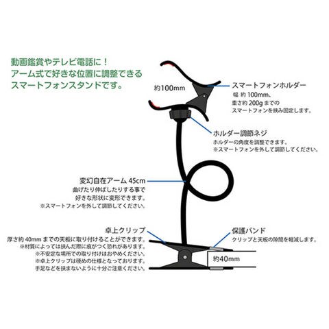 ●変幻自在アーム45cm:曲げたり伸ばしたりする事で好きな形状に変化できます。