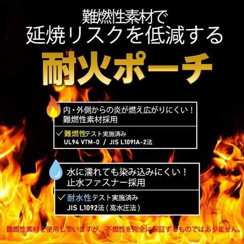難燃性素材で延焼リスクを低減する耐火ポーチです。