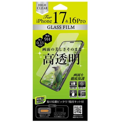 オズマ (綺麗に貼れる) (ホコリを残さない貼付けキット付)iPhone17/16Pro用ガラスフィルム 光沢 クリア AFG-CLIP17