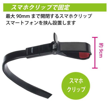 スマホを挟むクリップ部分は最大9cm開閉し、多くのスマートフォンに対応しております。
