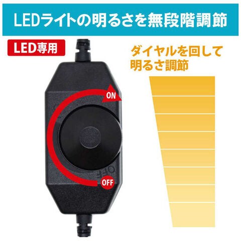 本製品をUSB LEDライトにとりつけ、ダイヤルで明るさ調節することができます。オフ側に[カチッ]音がするところで回すと通電が切れ、接続機器の電源がオフになります。